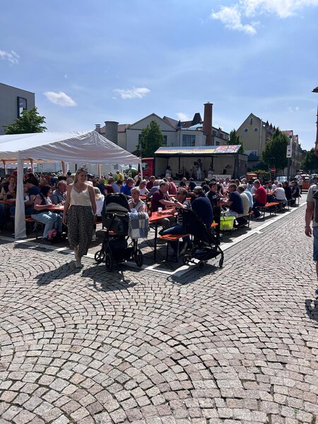 Unsere diesjährige Bewirtung auf dem Pfingstmarkt gemeinsam mit der Kolpingfamilie vor dem Rathaus wird uns allen noch lange in Erinnerung bleiben. Es war ein Erfolg auf ganzer Linie – und das lag nicht nur an dem Kaiserwetter, das uns den ganzen Tag über verwöhnt hat.